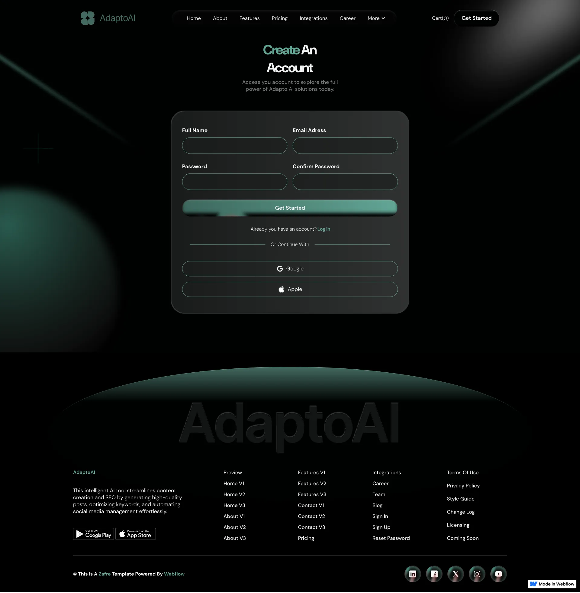 With a total of 3 different faqs , ctas and testimonials, you can easily customize the AdaptoAI Webflow Template to fit your company needs and requirements.